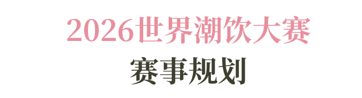 2026世界潮饮大赛,拟组织来自2026世界潮饮大赛中国区选拔赛总决赛的选手与来自海外各国家地区(如:新加坡、印尼、泰国等)的参赛选手一起角逐“2026世界潮饮冠军”的荣誉。