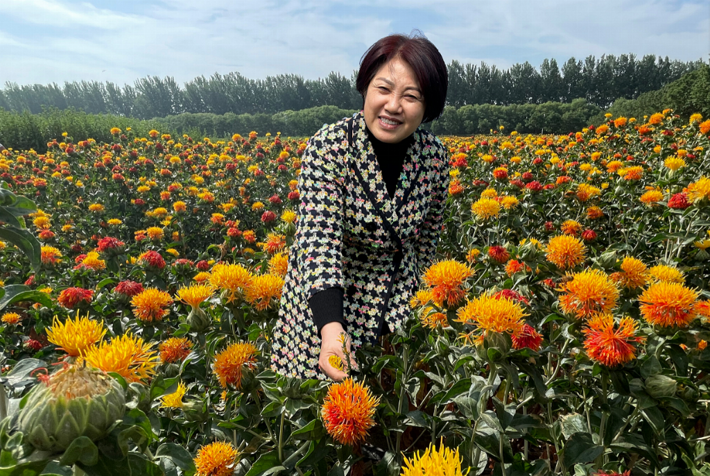 梁慧珍重点提到了红花的综合利用,除了花丝入药,红花种子亚油酸含量高,可加工成高档食用油;红花秸秆粗蛋白含量高,加工成饲料的成本低、营养价值高,适口性好,在饲料价格高昂的情况下,可以替代部分其他饲料,降低养殖成本。因此,红花的综合开发利用经济效益明显。
